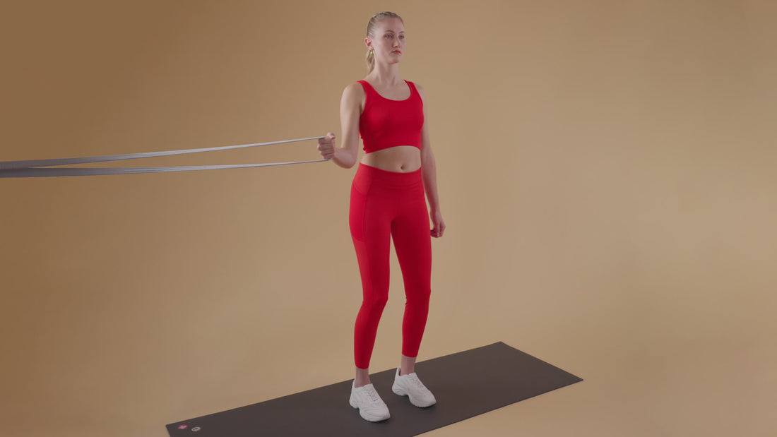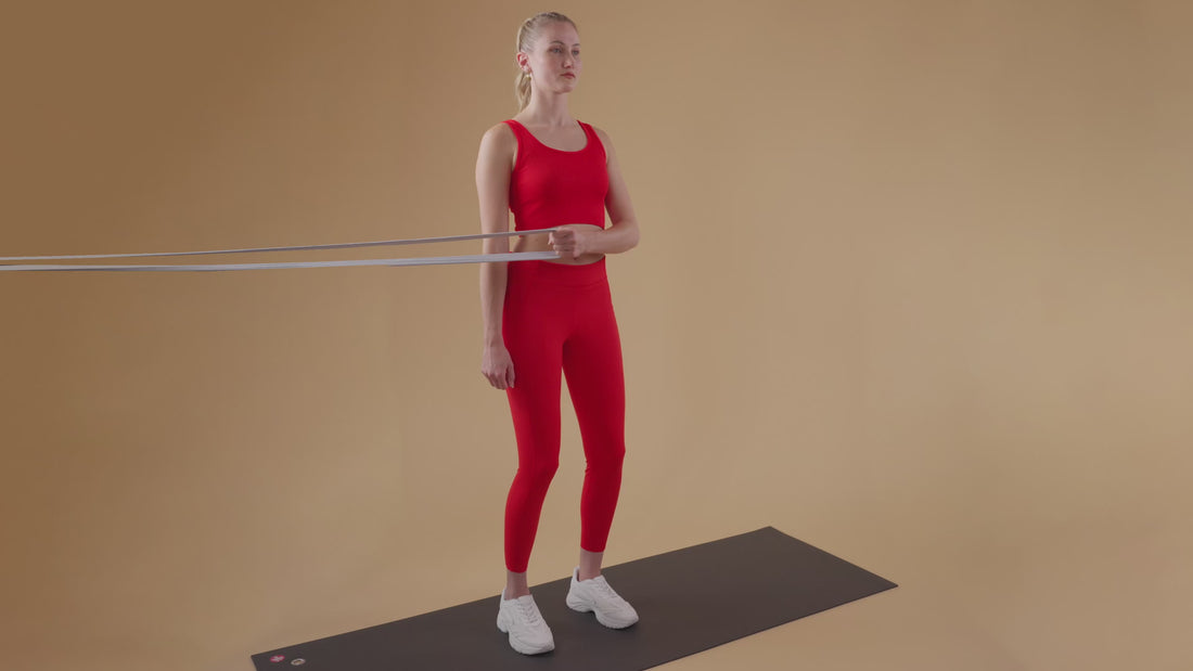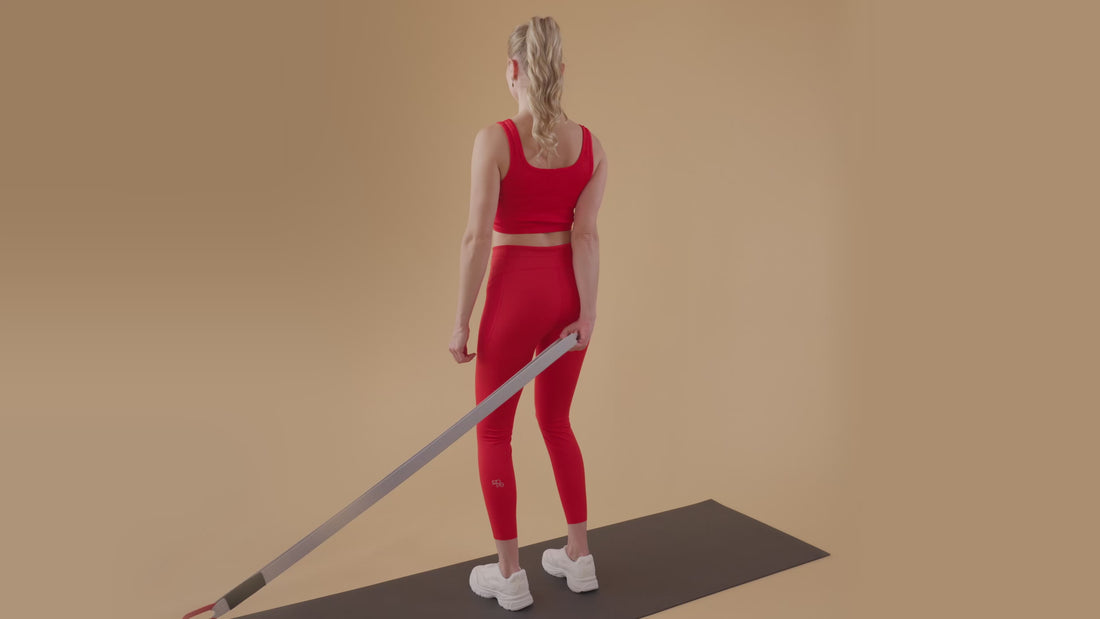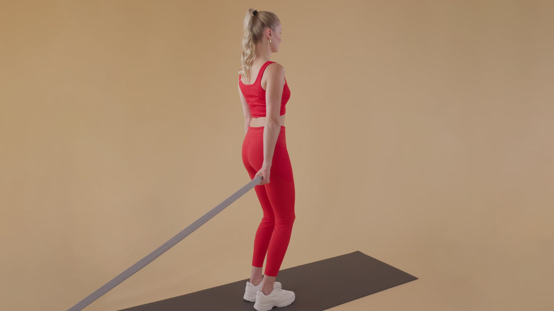 Den äusseren Arm gestreckt hinter den Körper in Richtung Türanker halten.